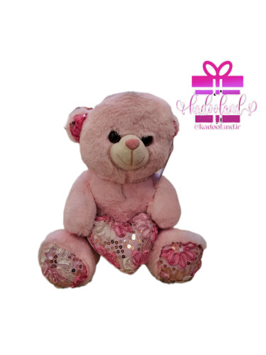 عروسک خرس قلب پولکی ۲۹ سانتی