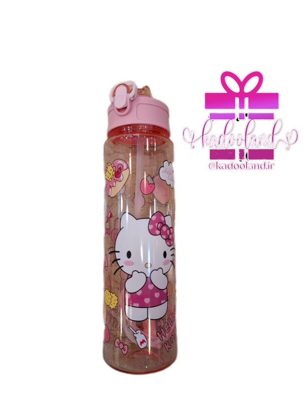 قمقمه نی دار طرح هلو کیتی دارای بند برای حمل مقاوم در برابر ظربه جنس خارجی میباشد.