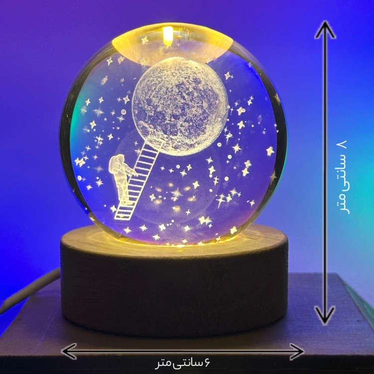 گوی کریستالی مدل ماه و فضانورد و نردبان گزینه مناسبی برای هدیه به کسانی است ک عاشق فضا هستند علاوه بر جزییات فوق العاده گوی کریستالی همراه با پایه نورانی عرضه می شود که موجب زیبایی چند برابری گوی است و این مزیت را هم برای شما فراهم می سازد که به عنوان یک چراغ خواب از آن بهره مند شوید این پایه چوبی با سیم از طریق usb به برق شهری متصل می شود و شما را از شارژ کردن های پیاپی رها می سازد و می توانید در طول شبانه روز از آن استفاده کنید همچنین کلید روشن خاموش آن باعث می شود زمانی که می خواهید گوی در حالت خاموش باشد نیازی به جدا کردن از پریز برق نداشته باشید.
