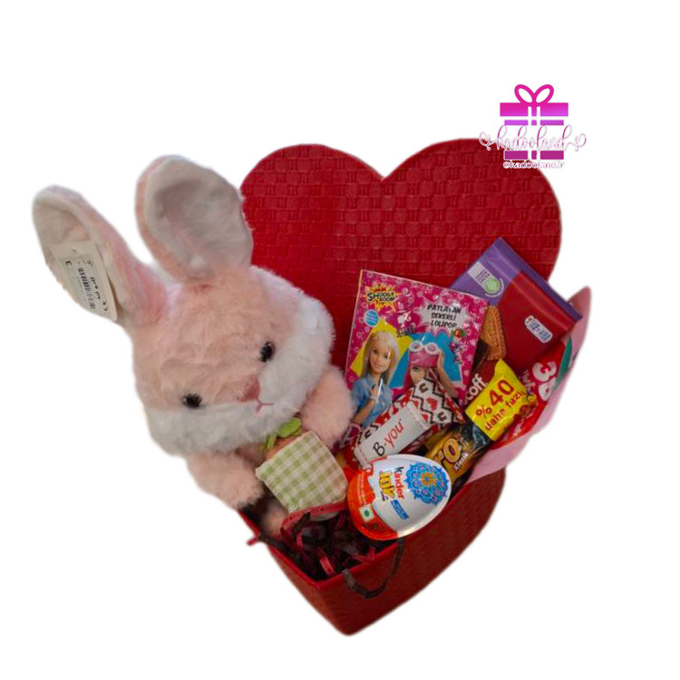 1 عدد عروسک پولیشی خرگوش سبد به دست ، جنس وارداتی ، قابل شستشو ، ضدحساسیت